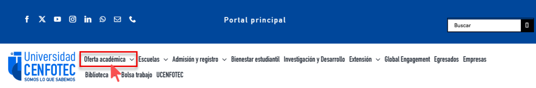 En la página, encontrará las diversas carreras, técnicos, programas y cursos que la Universidad pone a su disposición, únicamente debe dirigirse al apartado "Oferta académica" y podrá consultar por las opciones que sean de su interés.